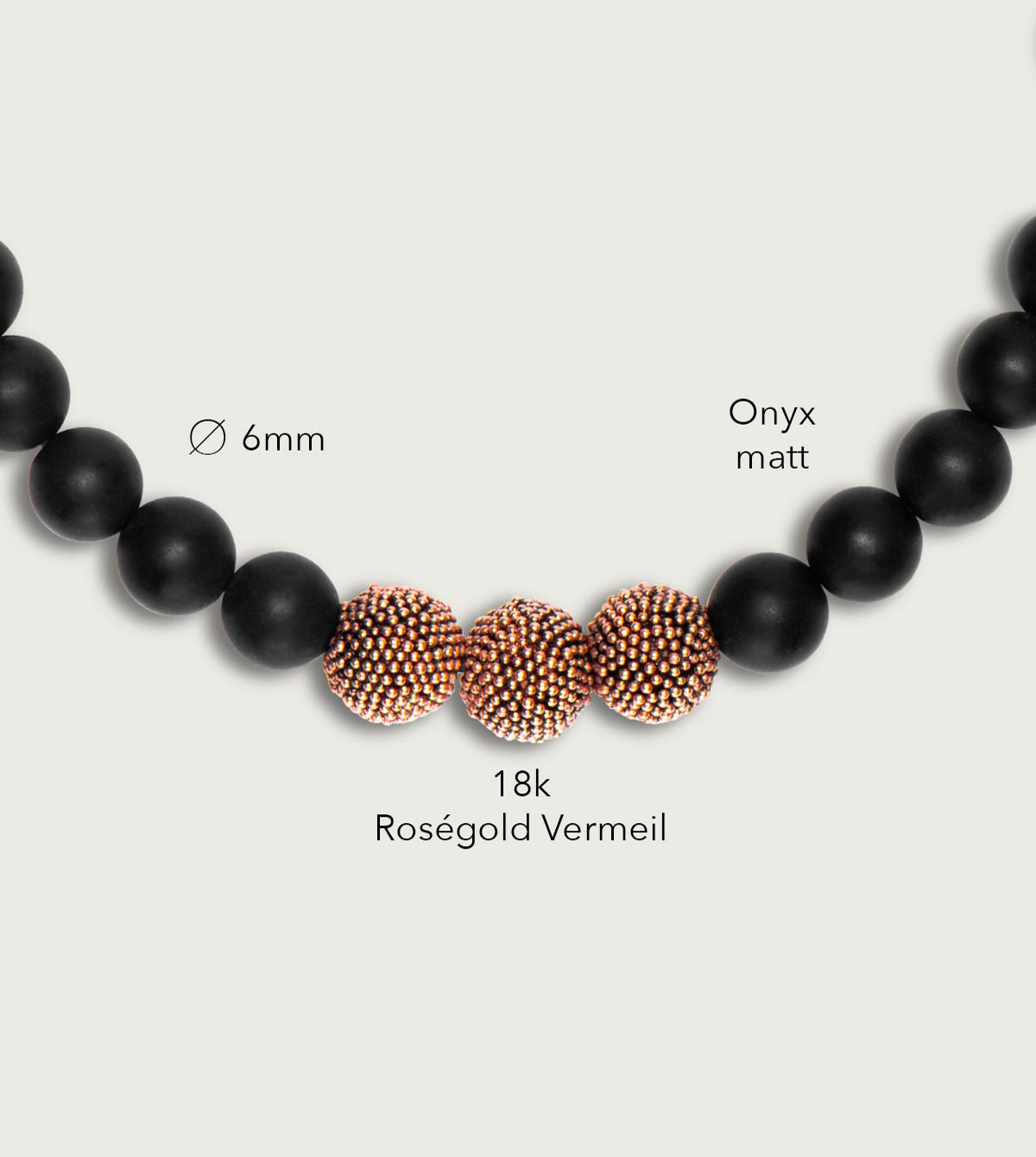 Minimalistisch & einfach schön wirkt dieser Mix aus mattem Onyx (6 mm) und den in Roségold vergoldeten Silberperlen. Ein Damenarmband geschaffen für den eleganten wie auch legeren Alltag.