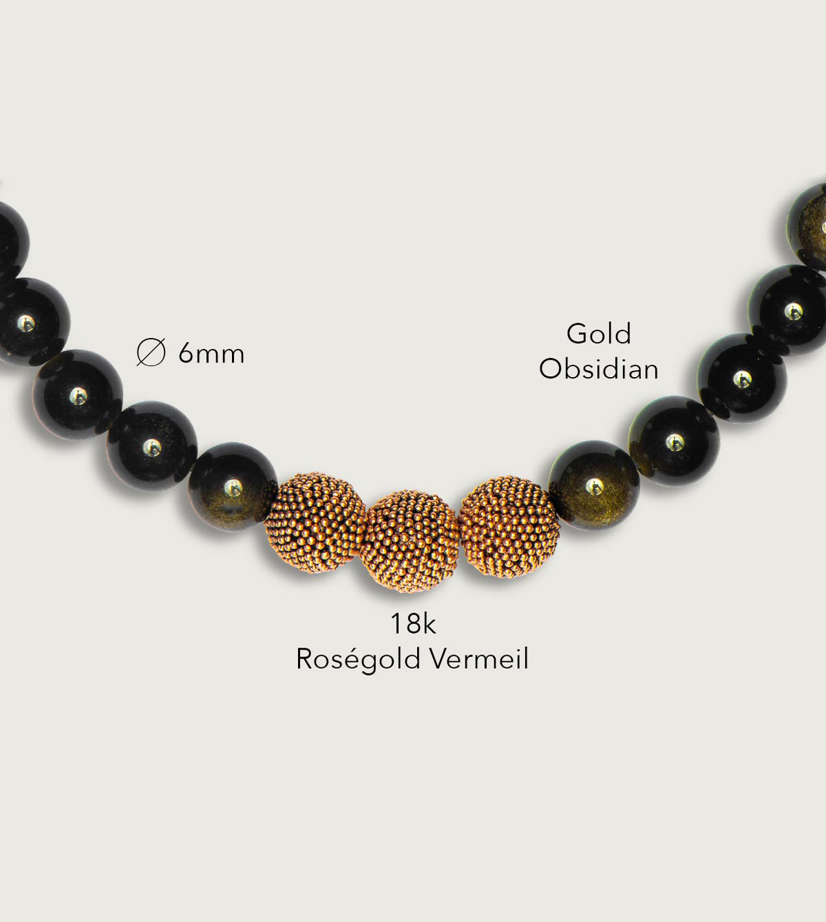Edel und zeitlos ist die Komposition dieses Armbands für einen eleganten Alltag aus Goldobsidian in 6 mm, abgerundet mit in Roségold vergoldeten & mattierten Silberperlen für ein stilvolles Highlight - passend zu fast jedem Outfit.