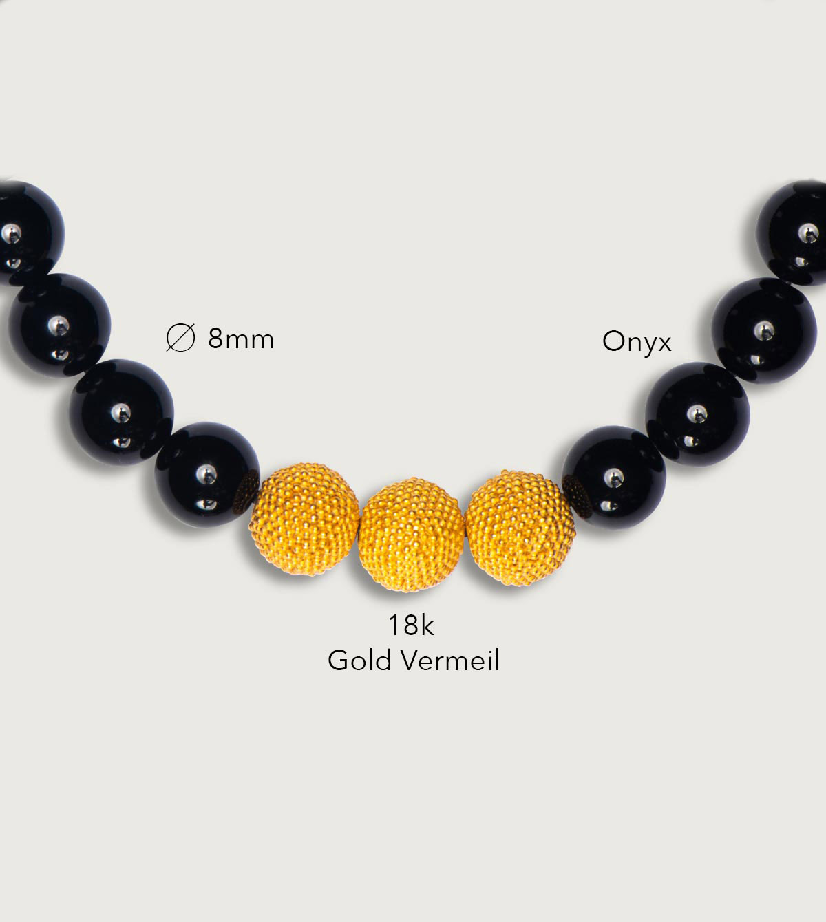 18k Gold Vermeil Perlen & Onyx Ø 8mm