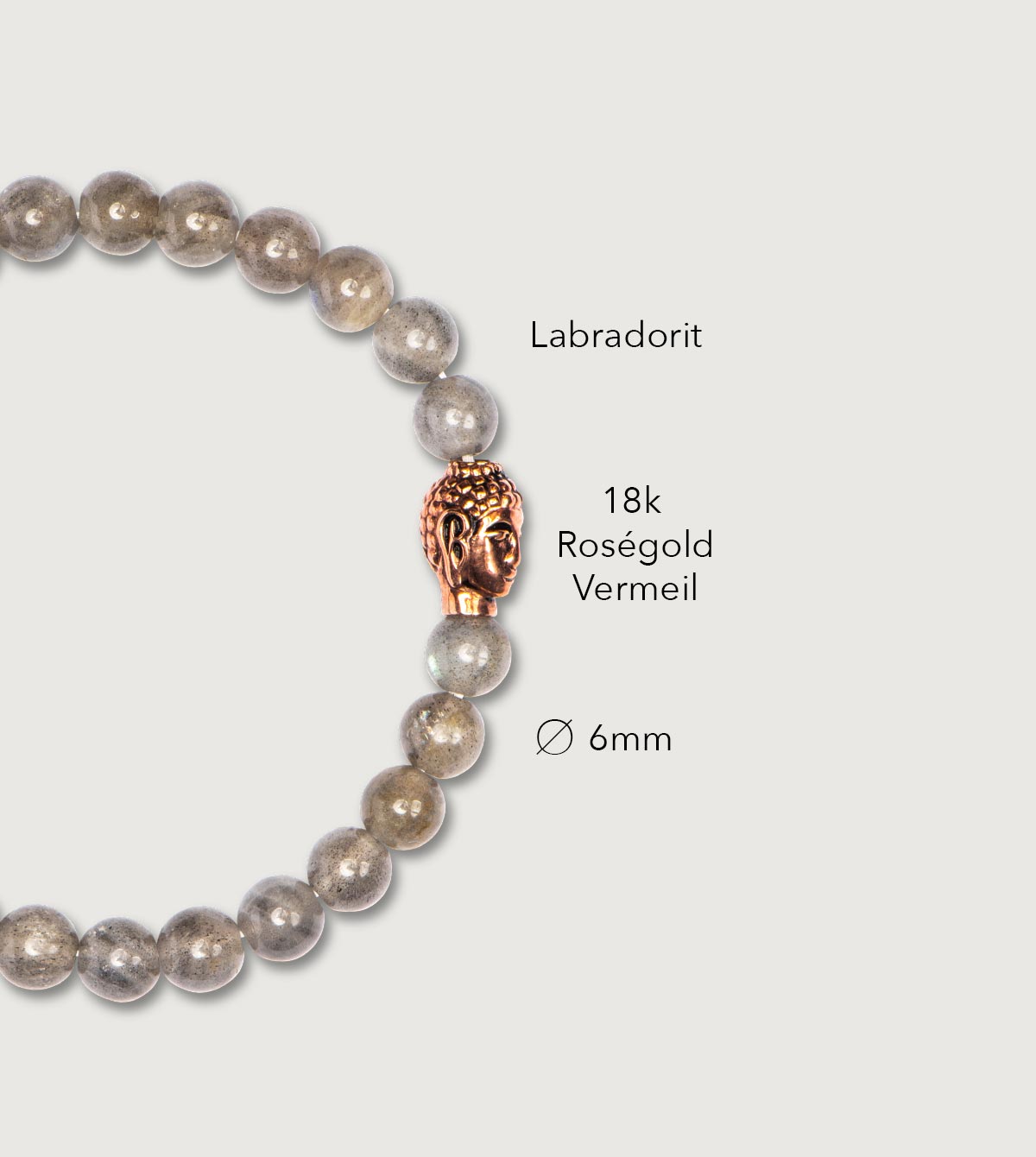 18k Roségold Vermeil Perlen & Buddha mit Labradorit & rosa Jade Ø 6 & 8mm