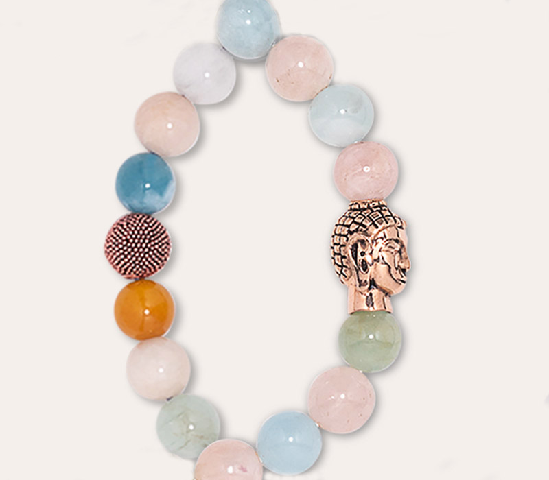 18k Roségold Vermeil Perle & Buddha mit Morganit Ø 8mm