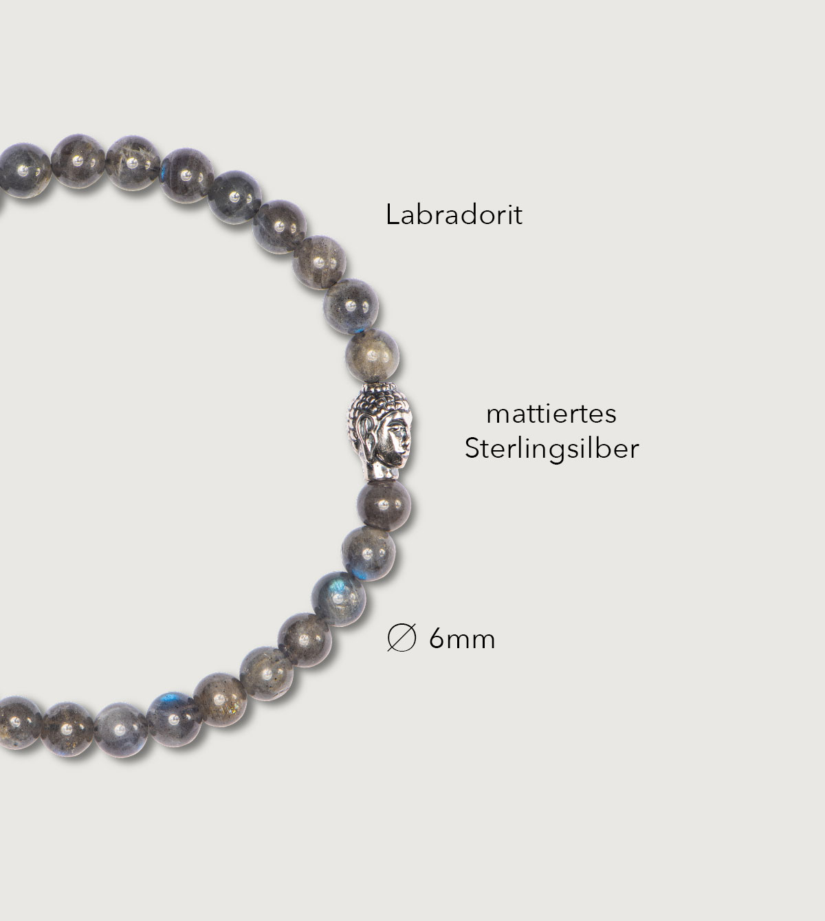 Aufgrund der Charakteristika natürlicher Edelsteine sowie der Handfertigung der Silber- und Buddhaperlen, können diese in Größe, Form und Farbe leicht variieren. Mit unserer sorgsamen Qualitätskontrolle stellen wir sicher, dass die Bestandteile an jedem Armband harmonisch aufeinander abgestimmt sind.