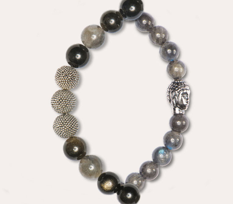 Sterlingsilber Perlen & Buddha mit Labradorit & Goldobsidian Ø 6 & 8mm