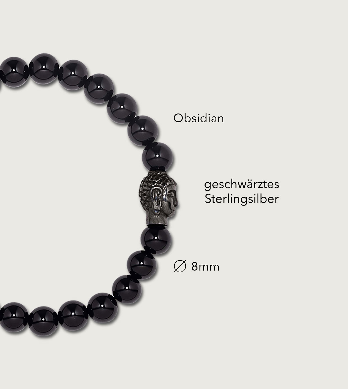 Sterlingsilber Perle & Buddha geschwärzt mit Onyx & Obsidian Ø 8mm