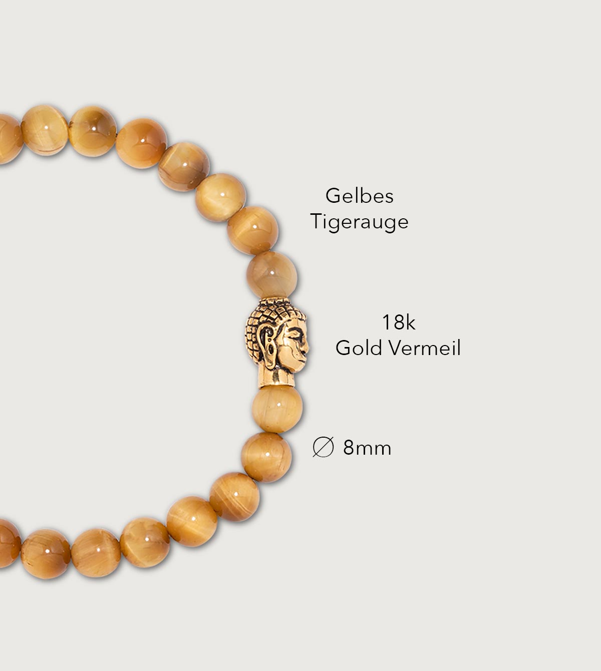 18k Gold Vermeil Buddha & gelbes Tigerauge Ø 8mm